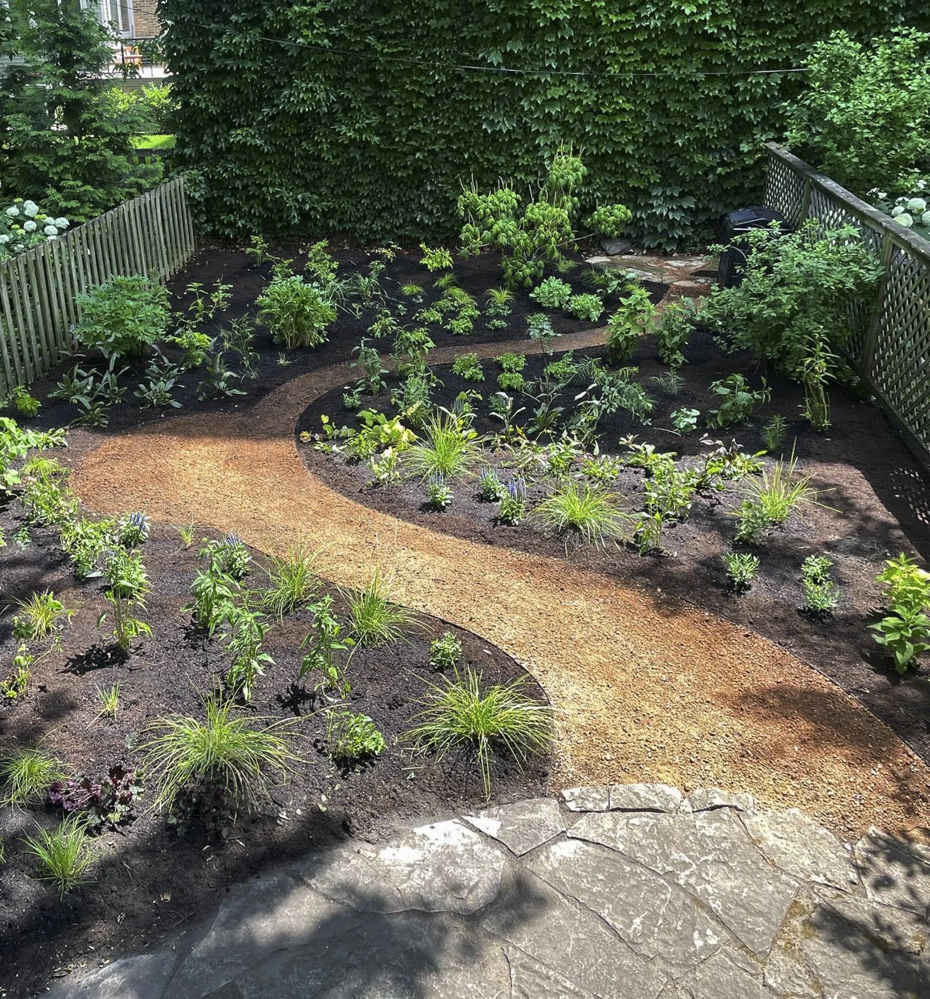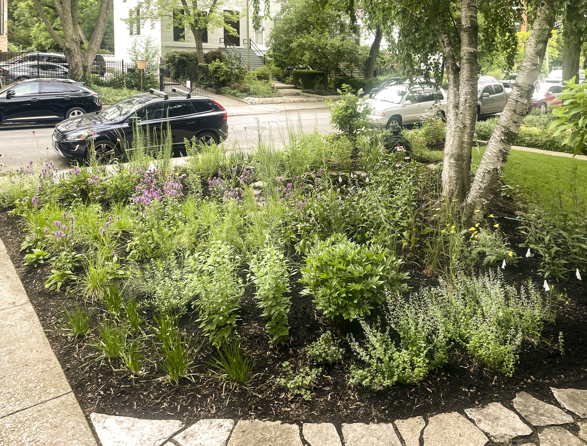 SOUTH OAK PARK RESIDENCE - lawn removal, hardscaping, garden installation, stewardship. Installed 2025.