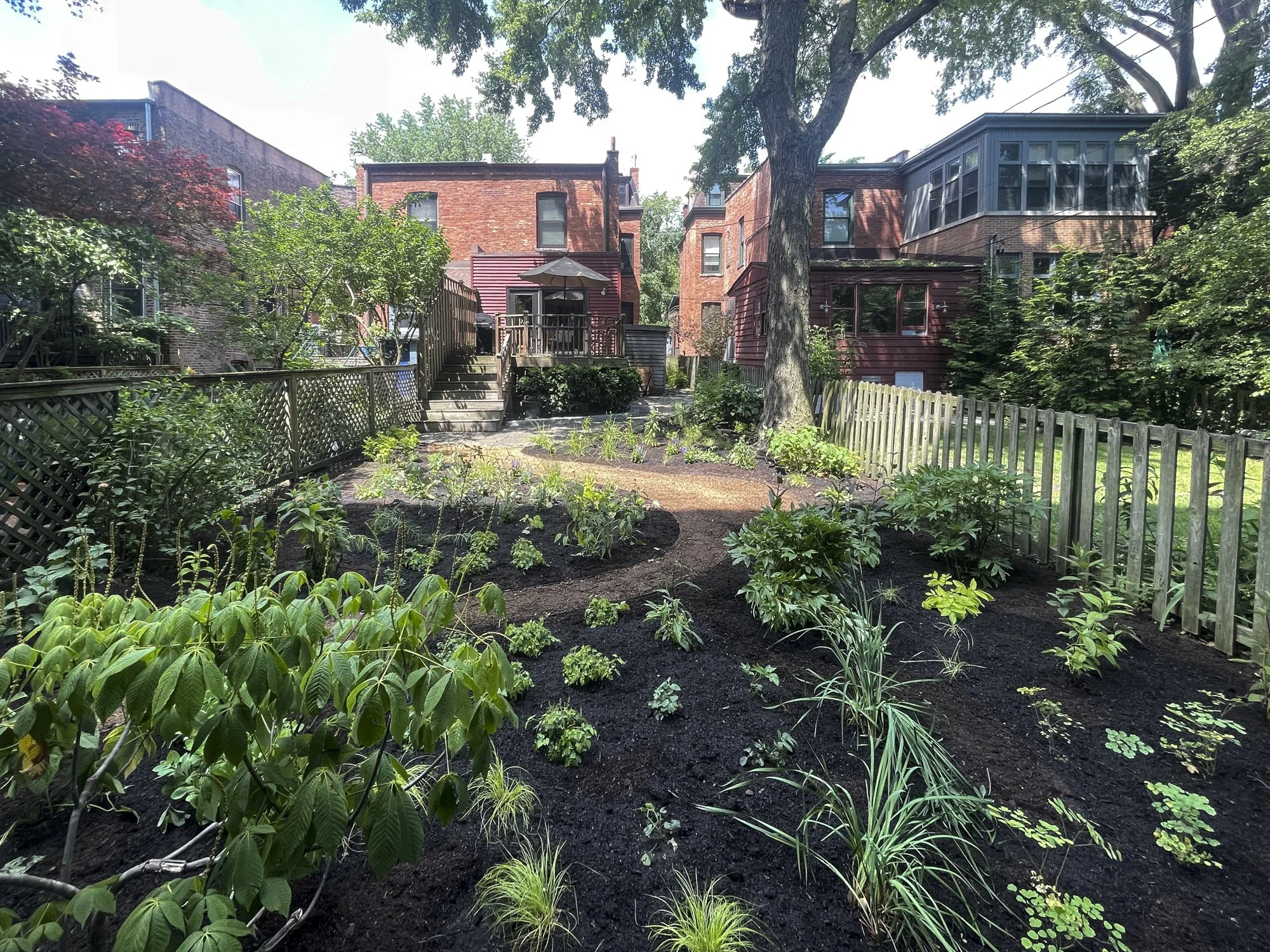 NORTH OAK PARK RESIDENCE - shrub removal, garden installation, stewardship. Installed 2025.